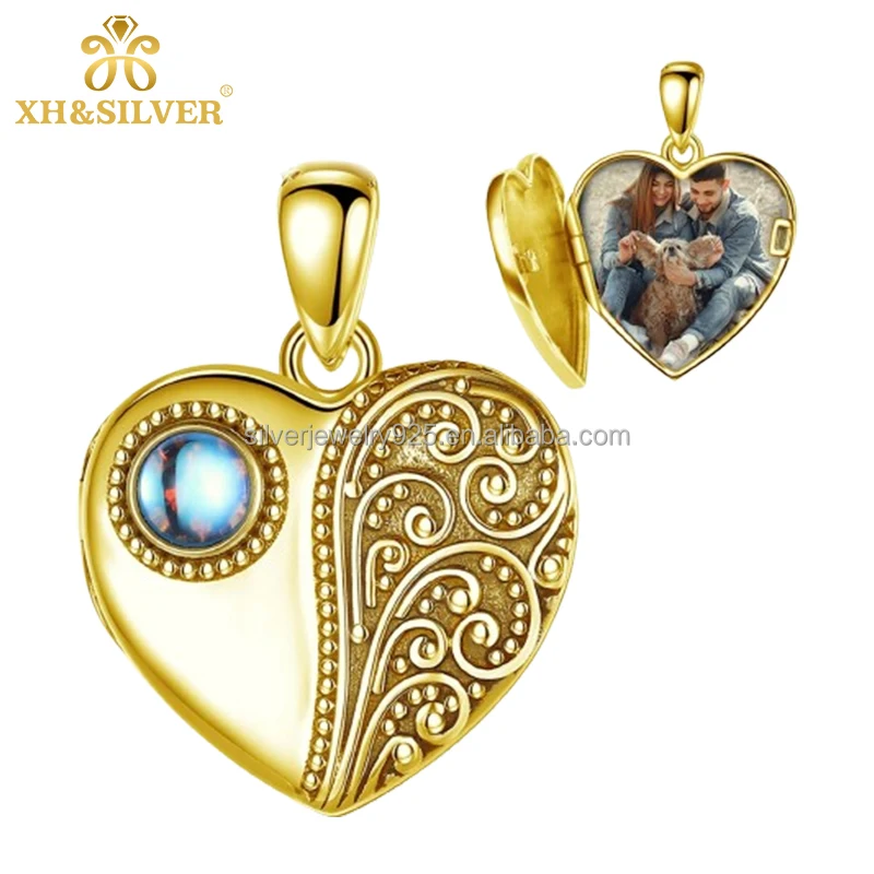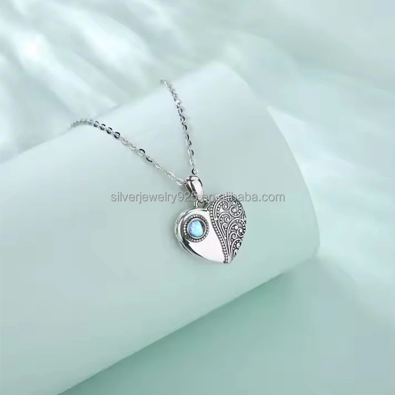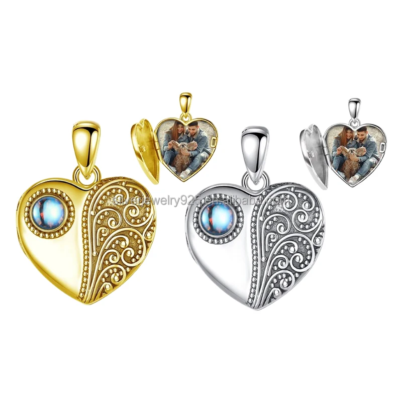 Wholesale 925 Sterling Silver Photo Locket Necklace Pendant Customised Heart & Moonstone Rhodium Plated Personalised Jewellery